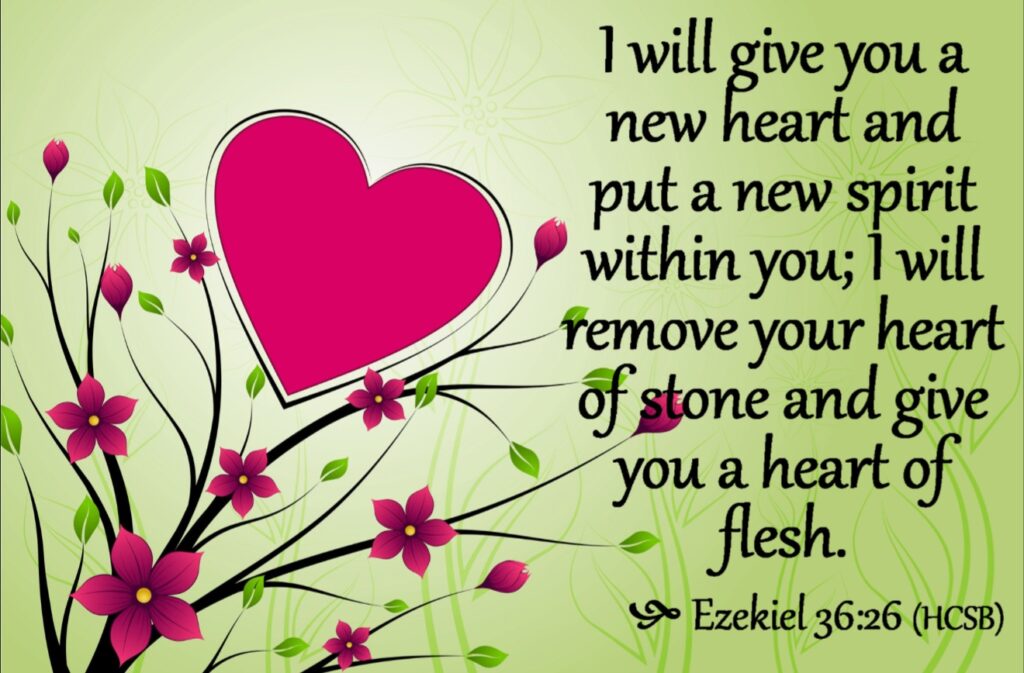 I will give you a new heart and put a new spirit within you; I will take the heart of stone out of your flesh and give you a heart of flesh. I will put My Spirit within you and cause you to walk in My statutes, and you will keep My judgments and do them. Ezekiel 36: 26-27